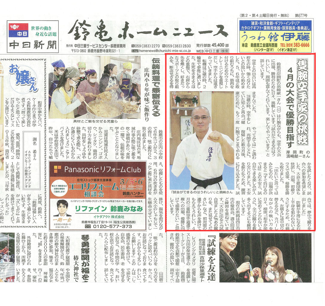 壮年部、濵﨑献一さんが「鈴亀ホームニュース」に掲載されました! 2017年02月25日 「鈴鹿のハマケン」の愛称で慕われている優真会壮年部、濵﨑献一さんが「鈴亀ホームニュース」最新号に掲載されました。今回は独占取材ということで、トップぺーじで4月の大会への意気込みを語っています。 「連絡」カテゴリの最新記事 < 前の記事次の記事 > コメント コメントフォーム 名前 コメント 評価する リセット リセット 顔 星 投稿する 情報を記憶