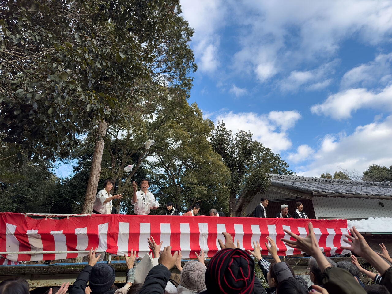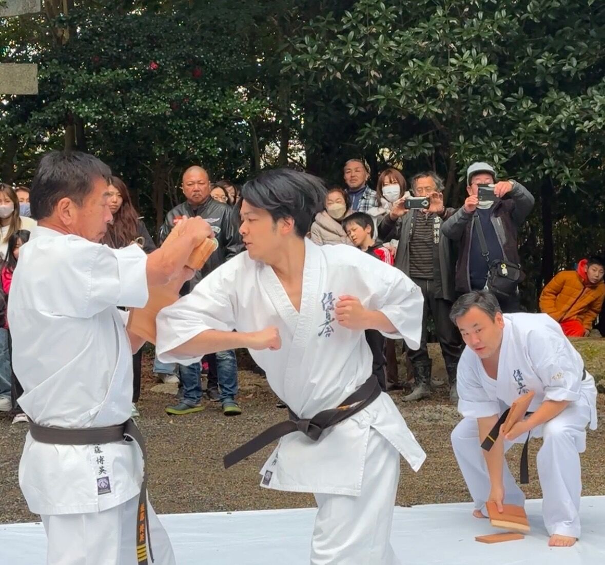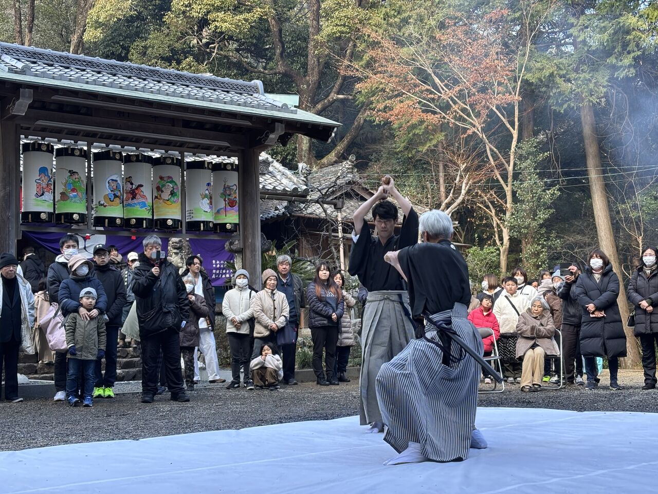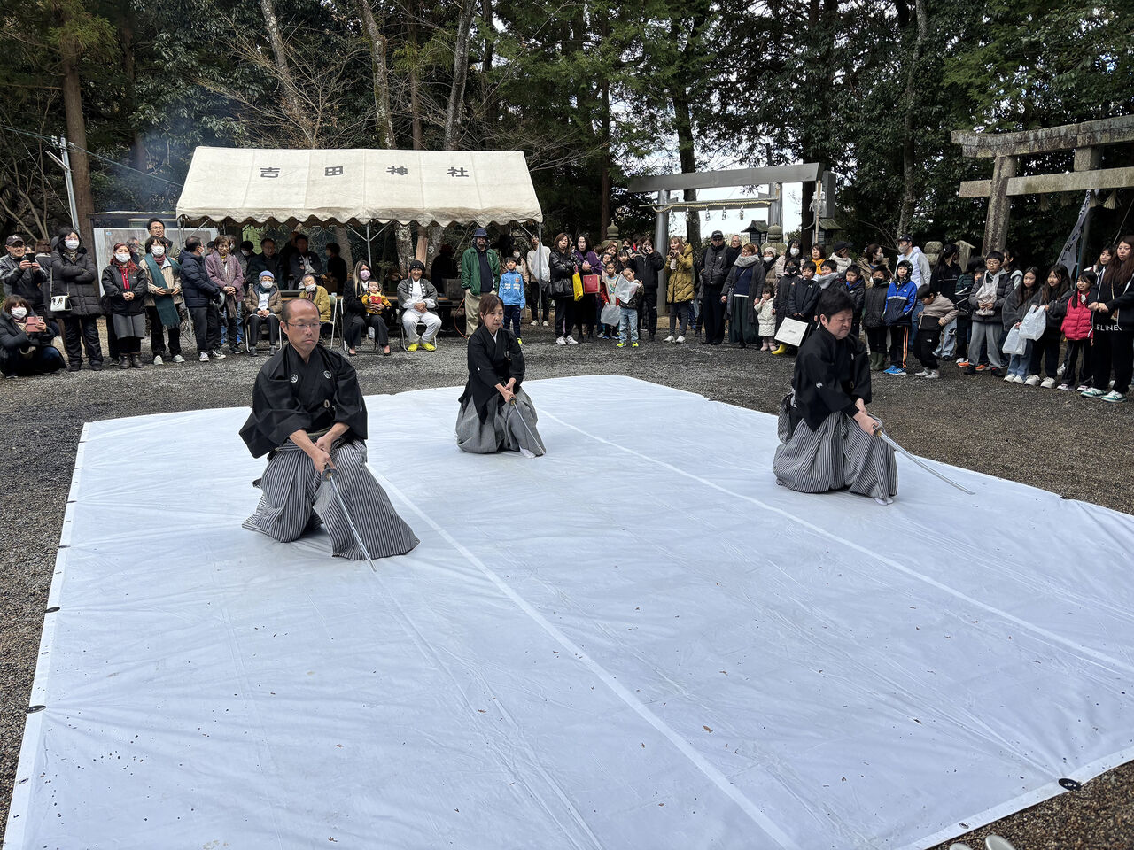 令和7年 吉田神社初午祭奉納演武会 2025年02月11日 昨年に引き続き、新年のご祈祷でお世話になっている四日市市八王子町の「吉田神社」様にて初午祭が開催され、境内で奉納演武を実施したしました。優真会古武道クラスからは、剛柔流の型と武器術、板の四方割り、古川師範の寸勁瓦割を披露。優真会会員も所属する無双直伝英信琉「三重頌風会(しょうふうかい)」からは、居合の型と太刀打ちを披露されました。つい先日積雪に見舞われたため足元の悪い中でしたが、普段の稽古の成果をご覧いただけたのではないでしょうか。お招きいただいた宮司、氏子総代の皆様、誠にありがとうございました。今後ともよろしくお願いいたします。 「活動報告」カテゴリの最新記事 < 前の記事次の記事 > コメント コメントフォーム 名前 コメント 評価する リセット リセット 顔 星 投稿する 情報を記憶