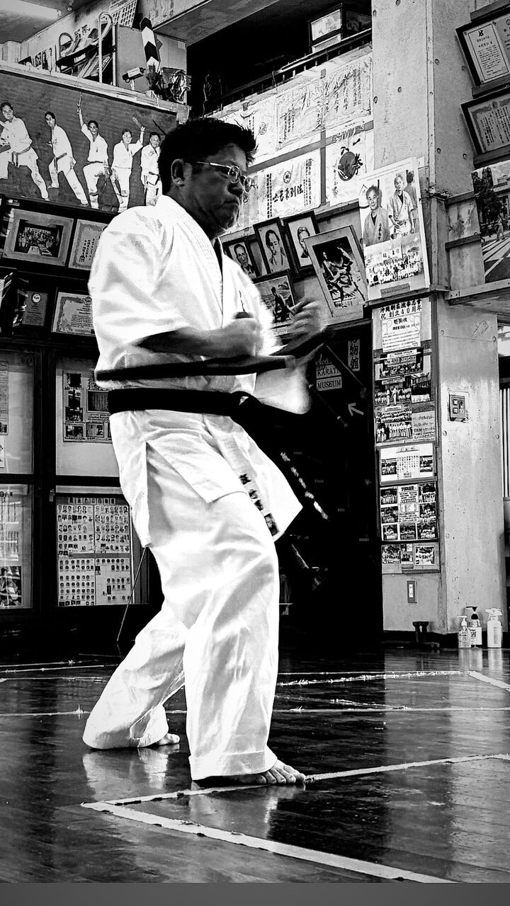 慣れない稽古メニューに戸惑いながらも必死についていくのがやっとでした。暑さの影響もあって道着は汗びっしょり。型の中にある技の一つ一つを理解しながらの稽古は大変勉強になり、部位鍛錬の大切さを実感しました。