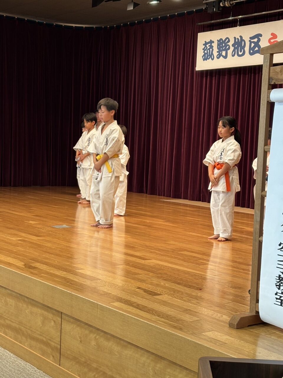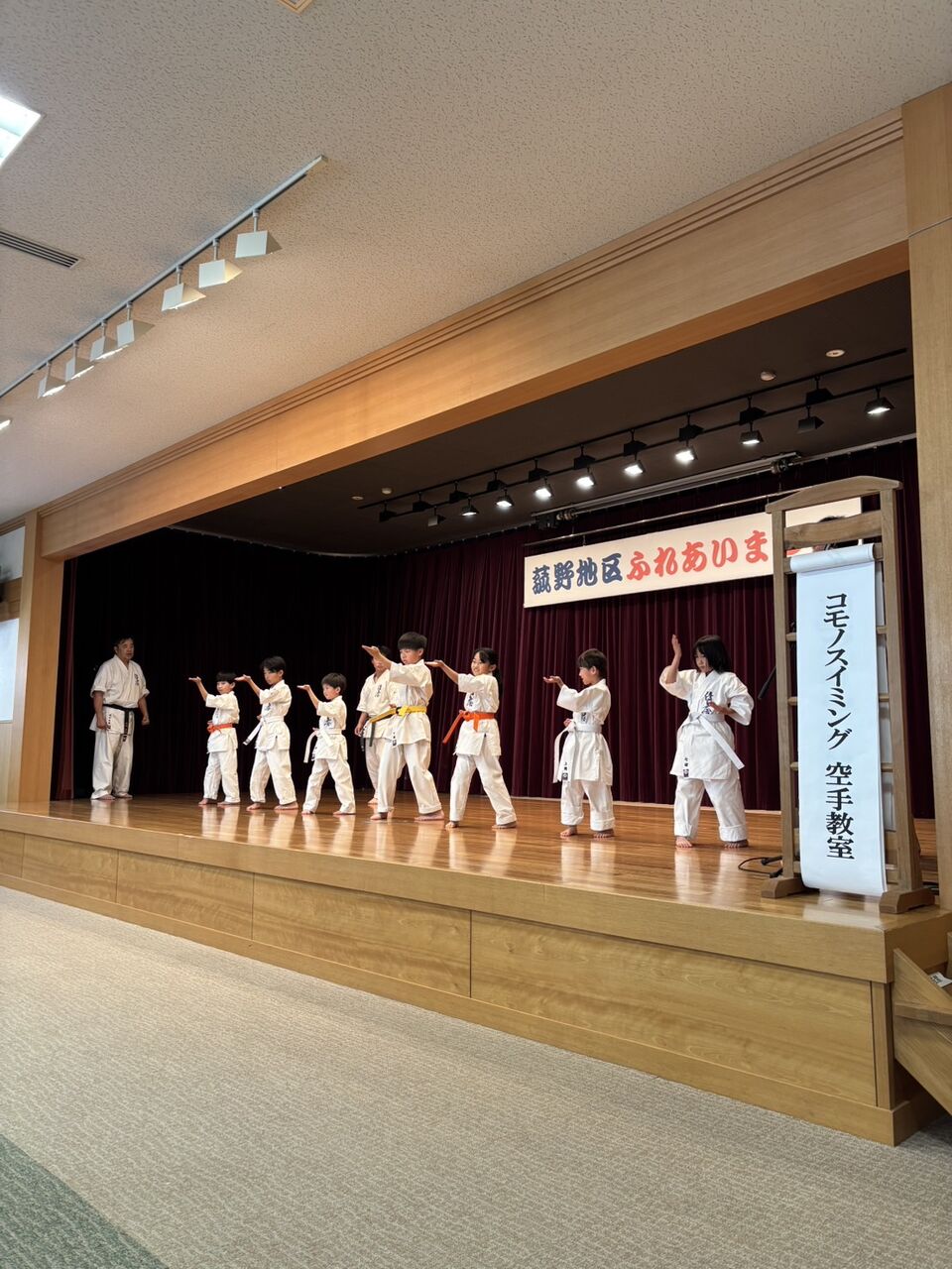 菰野地区ふれあいまつりにて演武を披露しました! 2025年11月24日 菰野地区コミュニティセンターにて「第15回菰野地区ふれあいまつり」が開催され、優真会コモノスイミングメンバー7名が演武を披露しました。その場基本の突き、受け、蹴り技から始まり、突きの型・撃砕を披露。まだまだ練習不足のメンバーもおり、なかなか一糸乱れぬとは言い難いですが、一生懸命元気な声で演武ができました。最後は小学五年生男子による「試し割り演武」で締めくくりました。 「活動報告」カテゴリの最新記事 < 前の記事次の記事 > コメント コメントフォーム 名前 コメント 評価する リセット リセット 顔 星 投稿する 情報を記憶